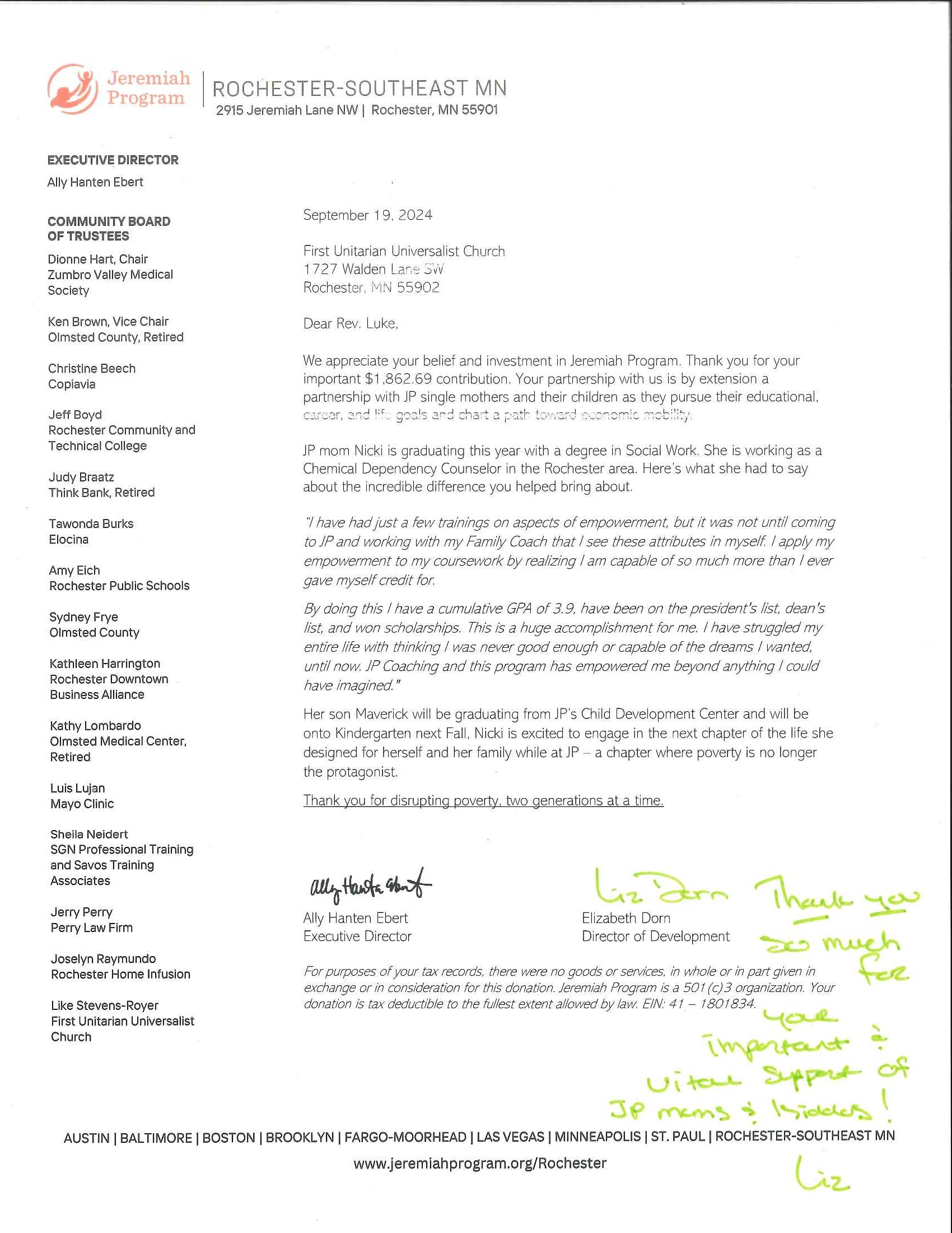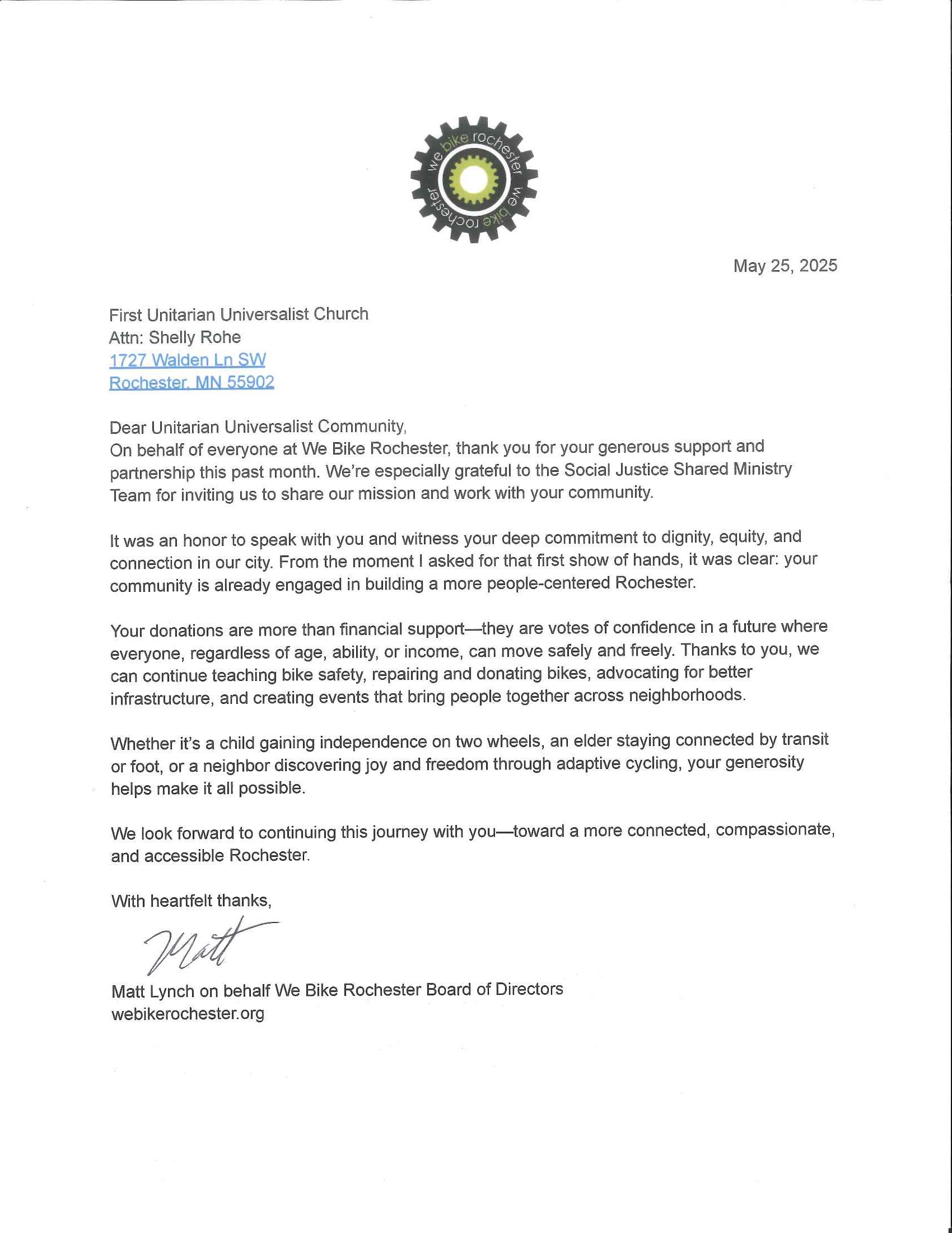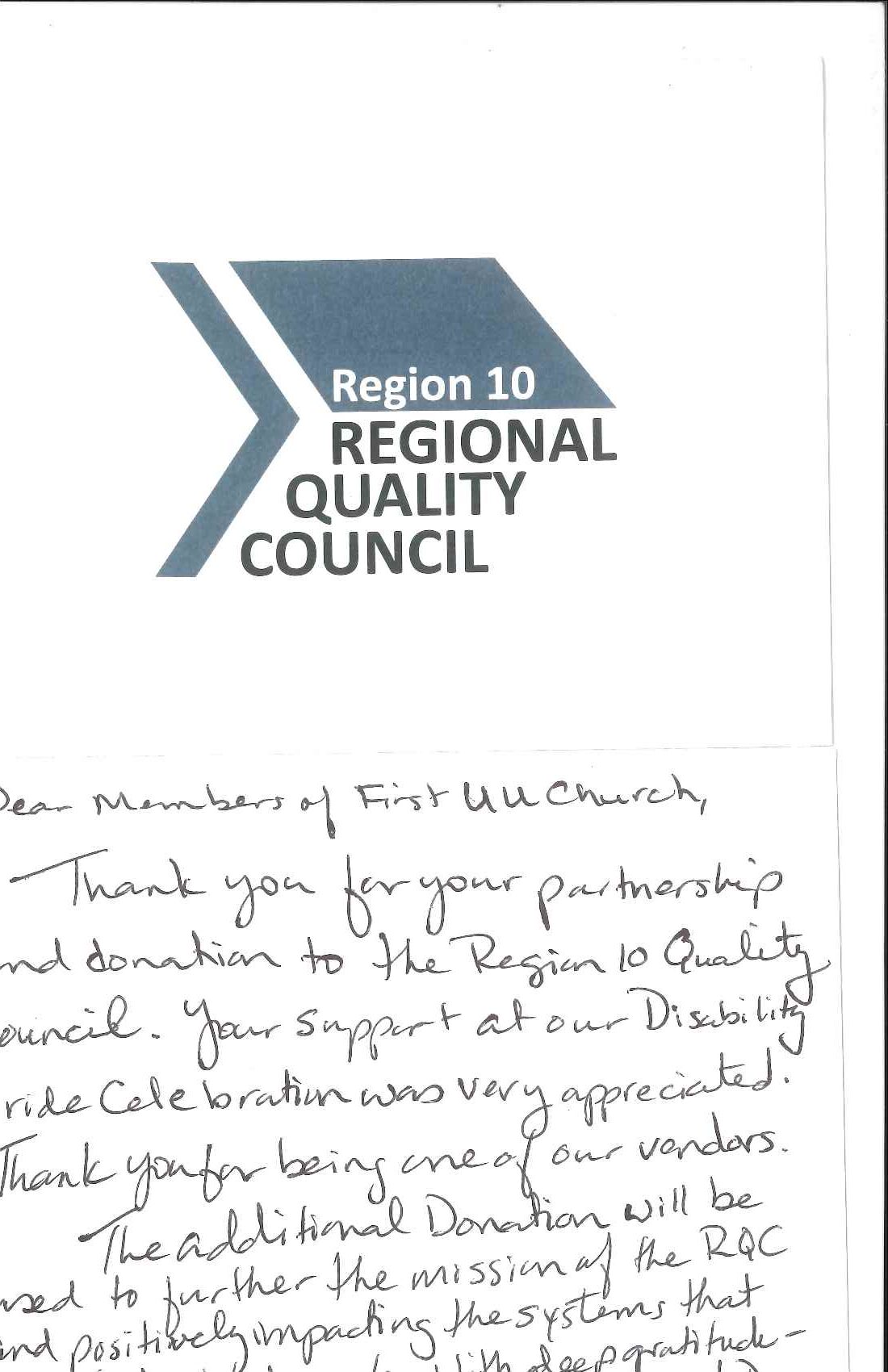 As we practice justice, we often give time and/or money to local and national organizations. Often, these organizations express their gratitude by sending First UU cards of thank you. This page will showcase many of these cards of thank you in appreciation of all for our members and friends who have given in so many ways.